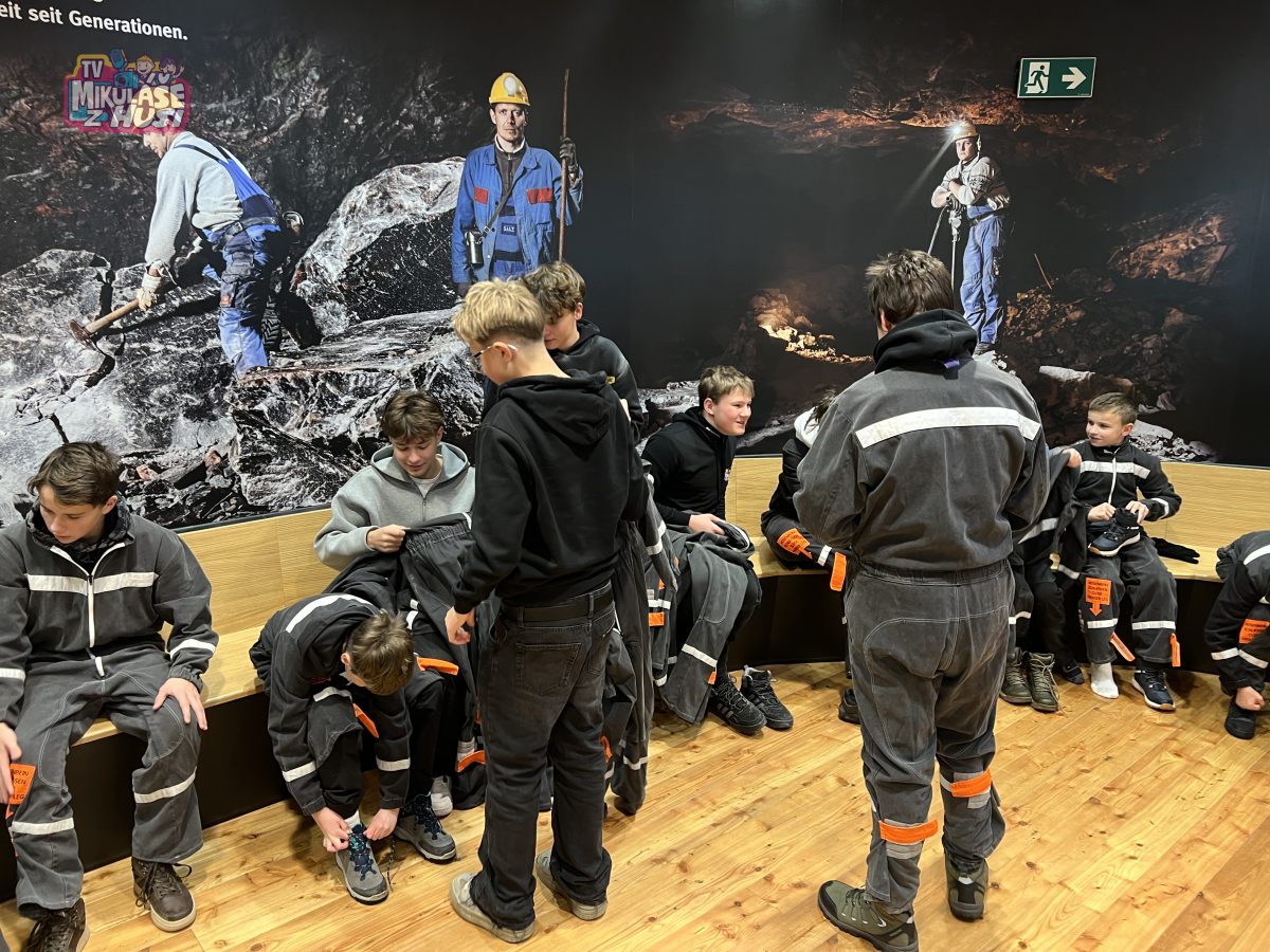 Po obědě jsme pokračovali do německého Berchtesgadenu, kde nás čekala cesta hluboko do podzemí. V solném dole jsme si oblékli hornické obleky, nasedli do důlního vláčku a vydali se do srdce dolu. Nezapomenutelným zážitkem byla dlouhá skluzavka i plavba po podzemním jezeře doprovázená světelnými efekty, které vytvářely téměř magickou atmosféru. Díky českému audio průvodci si prohlídku naplno užili i ti žáci, kteří s cizím jazykem teprve začínají. V závěru návštěvy si každý koupil něco na památku, ať už fotografii ze skluzavky nebo pravou alpskou sůl.